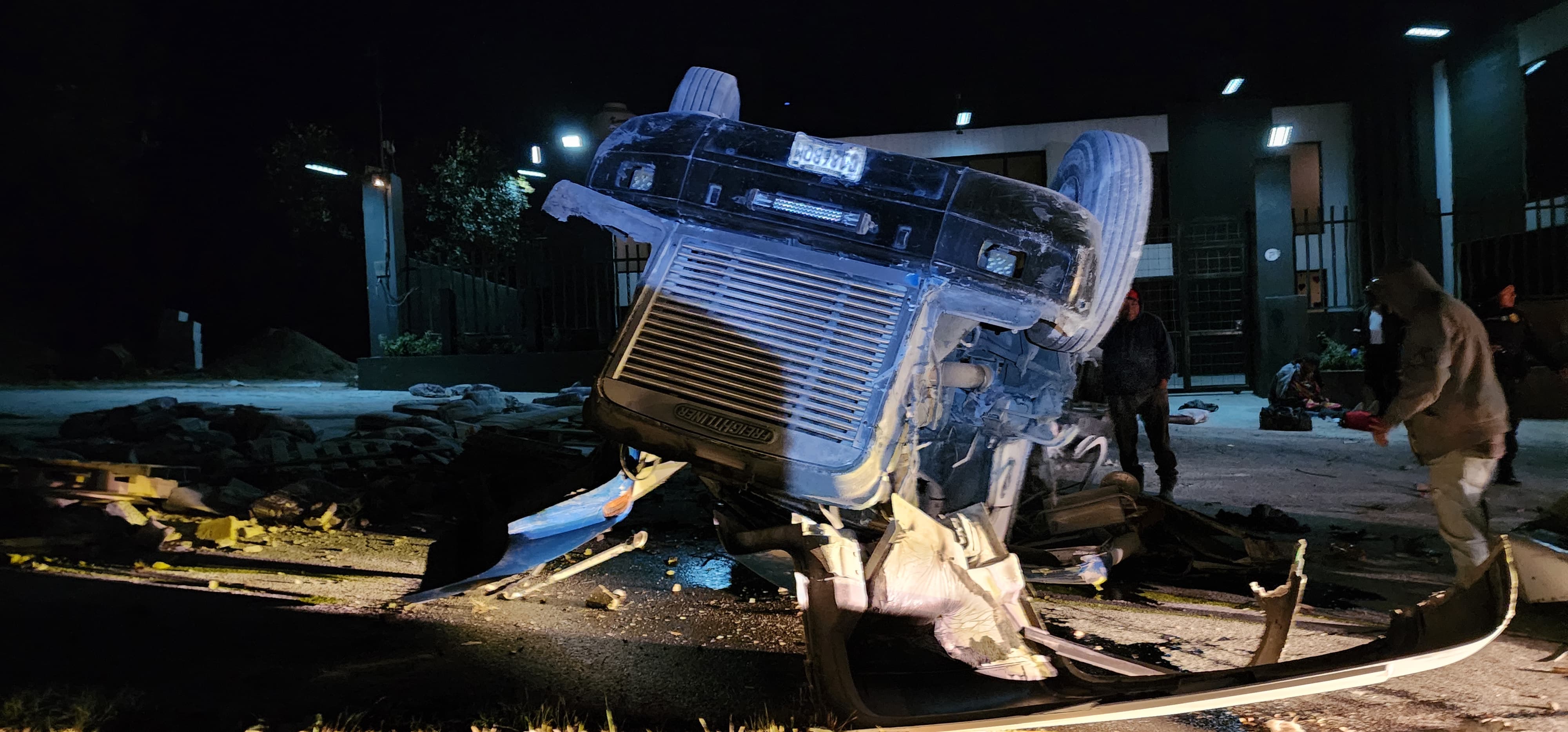 Según el reporte de los socorristas, un camión que transportaba material de construcción derrapó en el sector por causas que aún se desconocen.