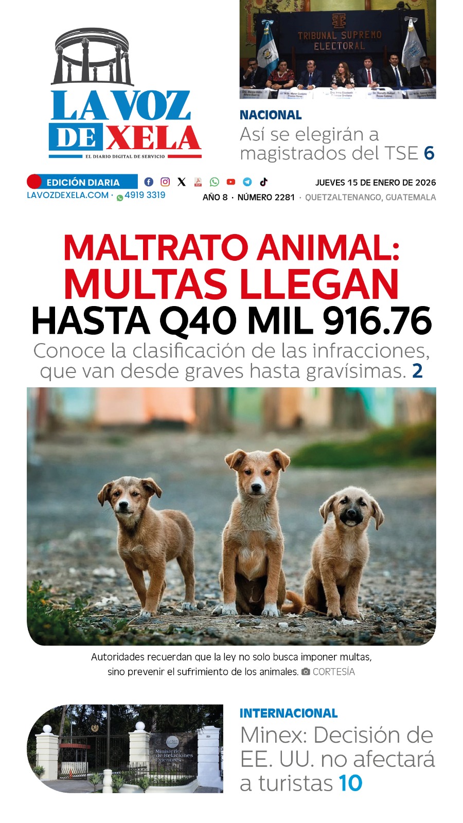 El Instituto Nacional de Sismología, Vulcanología, Meteorología e Hidrología (Insivumeh) informa que para este 15 de enero se prevé que la velocidad del viento alcance hasta 40 kilómetros por hora, especialmente en el Centro del país y en los Valles de Oriente.