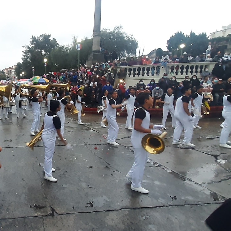 Las lluvias no son impedimento para que cientos de familias acudan al centro de la ciudad para escuchar el sonido de los instrumentos como los redoblantes, los bombos y las liras.