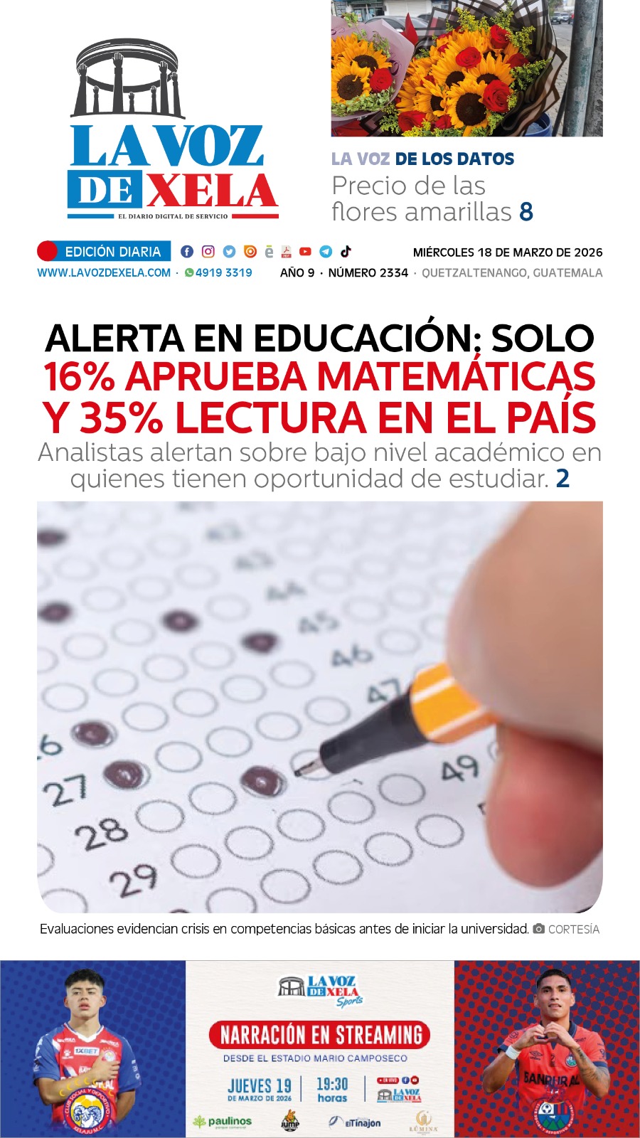 El partido se disputará este jueves 19 de marzo a las 20:00 horas en el Estadio Mario Camposeco.