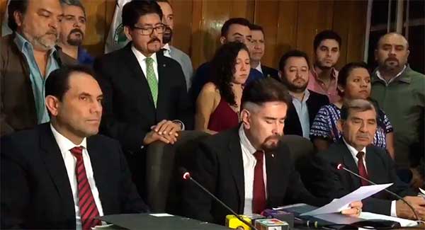 Pronunciamiento del Consejo Superior Universitario (CSU) encabezado por el rector de la Usac, Murphy Paiz y el secretario general Carlos Valladares. Foto: elPeriódico[/caption]