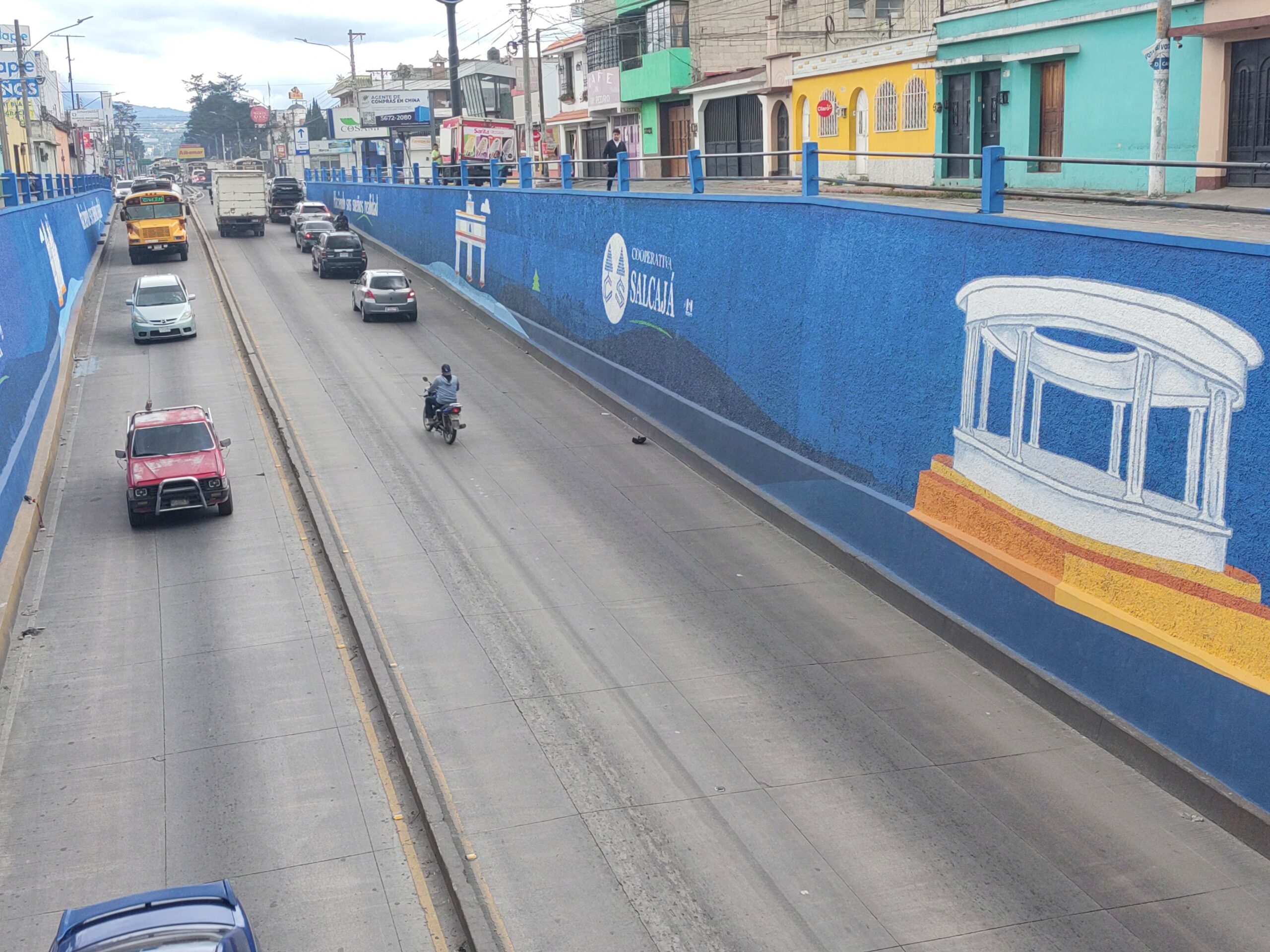 Conductores y peatones que pasan por la estructura pueden apreciar los murales del Templo a Minerva, Tecún Umán, La Marimba, la Catedral Metropolitana de Los Altos, el Monolito a Justo Rufino Barrios, el Teatro Municipal, el Templete del Parque Central y el Arco del Sexto Estado.