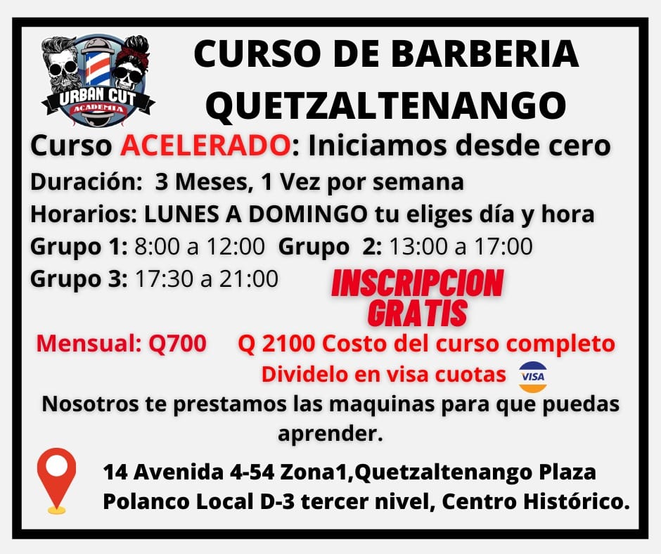 La situación actual también traer nuevas oportunidades a Quetzaltenango, esta vez, abre la academia de barbería: Urban Cut, que la puedes encontrar en el tercer piso de Plaza Polanco, esquina de la 4ta calle y 14 avenida de la zona 1 de Xela.