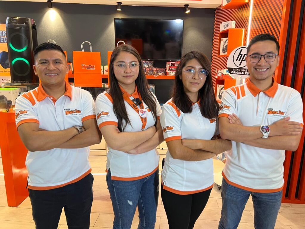 El equipo de Mister Chip está para asesorarte en tus compras y servicios. Hoy se lleva a cabo la inauguración en el centro comercial Utz Ulew Mall. Foto: La Voz de Xela