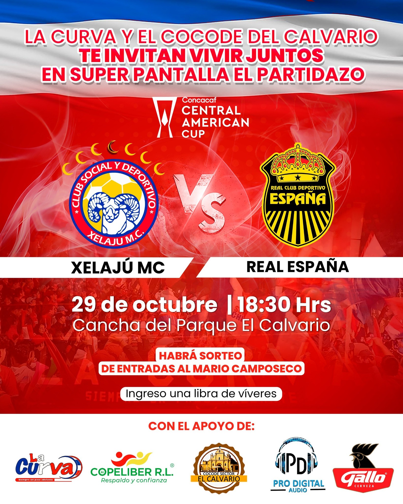 Este miércoles 29 de octubre, Copeliber invita a toda la afición superchiva a vivir una noche inolvidable en la Cancha del Parque El Calvario, donde se transmitirá en pantalla gigante la semifinal de vuelta de la Copa Centroamericana entre Xelajú MC y Real España.