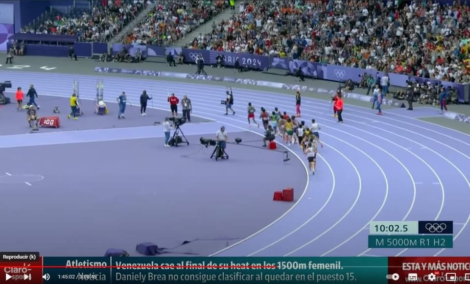 Nadie se imaginaba ese momento que quedó grabado: cuando, de pronto, el camarógrafo se atraviesa en medio de una carrera olímpica de cinco mil metros. Falló el protocolo y control del evento.